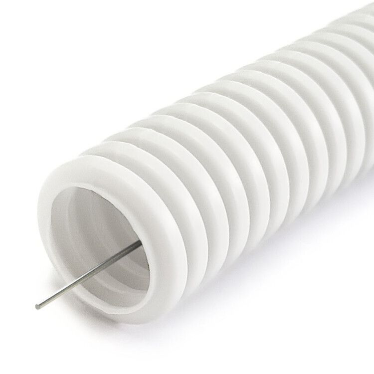 Труба гофрированная ПЛЛ легкая безгалогенная (HF) негорючая (НГ) белая с протяжкой диаметр 32 мм (упаковка 25 м) используется для прокладки силовых и слаботочных кабелей в жилых, офисных, торговых и производственных зданиях. Подходит как для скрытой, так и для открытой установки внутри стен, перекрытий, потолков, шахт и каналов. Особенно рекомендована там, где важна минимальная токсичность при возможном возгорании - например, в больницах, школах, метро, театрах и других местах массового скопления людей.