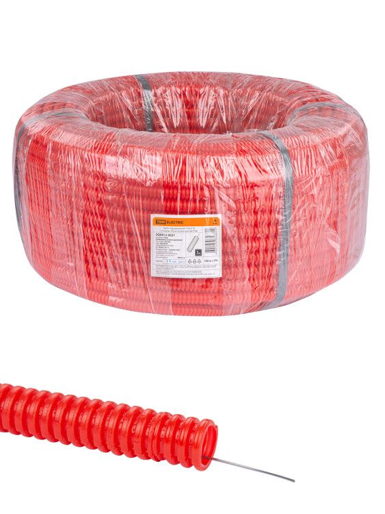 Труба гофрированная ПНД d 16 с зондом (100 м) легкая красная | SQ0413-0031 TDM