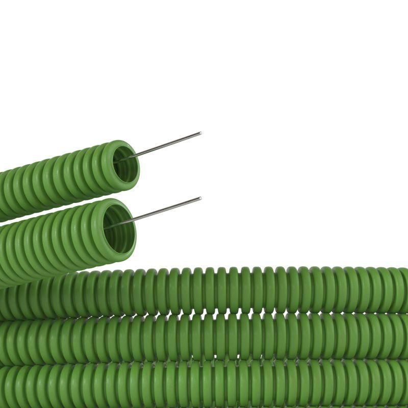 Труба гофрированная ПВХ гибкая легкая d20мм с протяжкой зел. (уп.100м) DKC 91920G ДКС