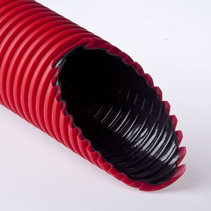 Труба двустенная 50/39,5мм ПНД/ПВД красная с протяжкой используется для защиты кабелей от механических повреждений, влаги, химических веществ и перепадов температур. Подходит для прямой закладки в грунт, замоноличивания в бетонные конструкции, а также для организации дренажа - отвода дождевых и талых вод от фундаментов, дорог и газонов.