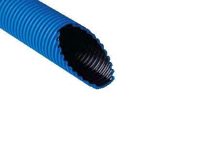 Труба двухстенная полиэтиленовая низкого давления/поливинилхлоридная d63/52мм (50м) синяя используется для защиты кабелей питания, управления и связи в условиях повышенной опасности. Подходит для: