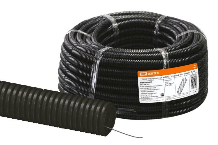 Труба гофрированная ПНД d 63 с зондом (15 м) легкая - SQ0413-0007 TDM
