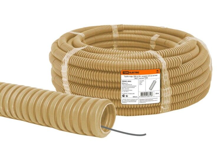 Труба гофрированная ПВХ d 20 с зондом (25 м) легкая ''ЭКО'' (сосна) - SQ0401-0052 TDM