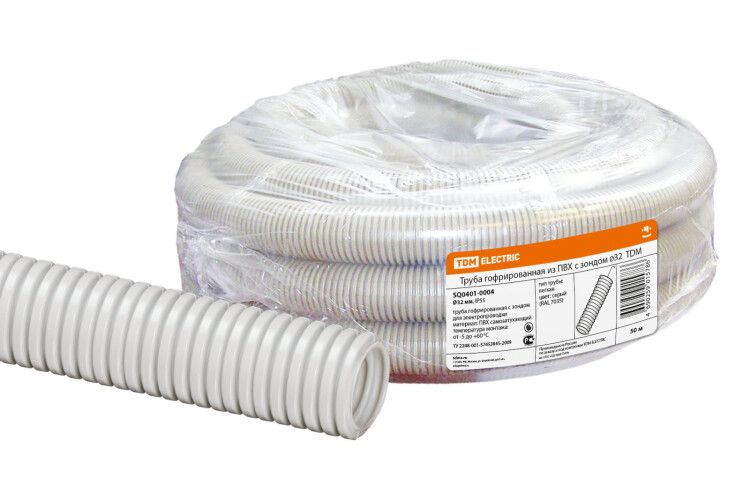 Труба гофрированная ПВХ d 32 с зондом (50 м) легкая - SQ0401-0004 TDM