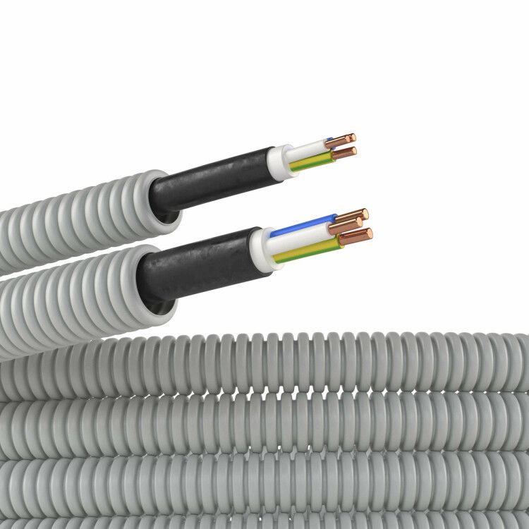 Труба гибкая гофрированная ПВХ d16мм с кабелем ВВГнг(А)-LS 3х2,5мм2 РЭК ГОСТ+ (25м) предназначена для прокладки силовых электрических цепей в местах, где требуется быстрый и безопасный монтаж без дополнительной протяжки кабеля. Подходит для использования в жилых, офисных и промышленных помещениях - например, при устройстве освещения, розеточных групп, подключения оборудования на производстве. Применяется исключительно в открытой прокладке: на стенах, потолках, в шахтах, на кронштейнах. Не предназначен для закладки в бетон или землю.