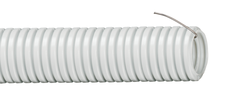 Труба гибкая гофрированная ПВХ диаметр 20 мм с протяжкой (100 м) используется для прокладки силовых и слаботочных кабелей в стенах, потолках, полу и штробах. Подходит для скрытой проводки в жилых домах, офисах, школах, больницах и легких промышленных помещениях. Применяется там, где требуется надежная защита кабеля от механических повреждений и внешних воздействий, но невозможна установка жестких каналов.
