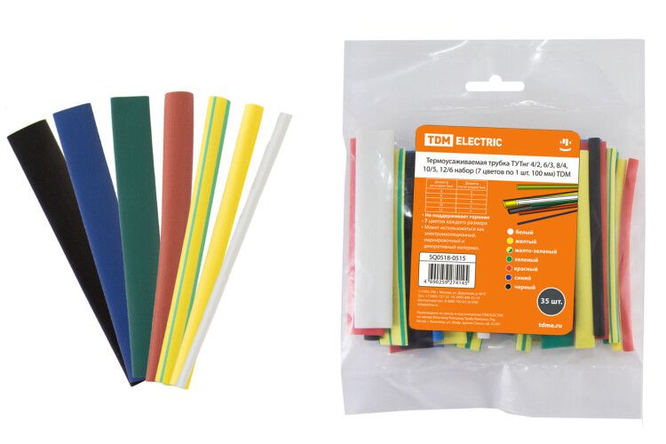 Термоусаживаемая трубка TDM ELECTRIC sq0518-0515 - это комплект из семи цветов для изоляции, маркировки и защиты проводов и соединений. Набор подходит для работ в условиях повышенной влажности, перепадов температур и где важна визуальная идентификация цепей.