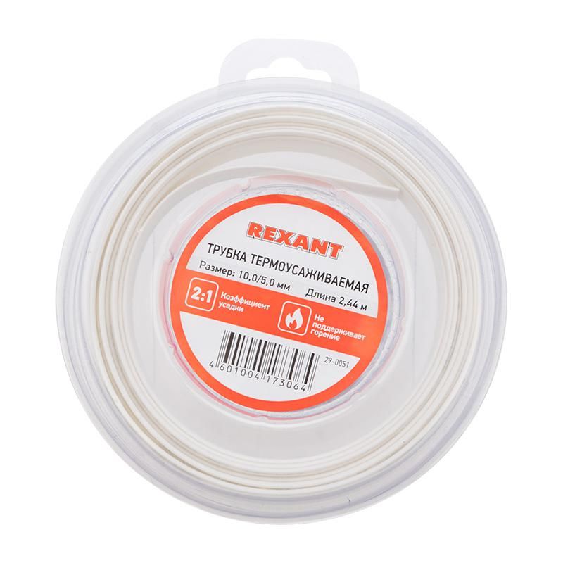Трубка термоусаживаемая 10,0/5,0 мм белая, ролик 2,44 м | 29-0051 REXANT MEET