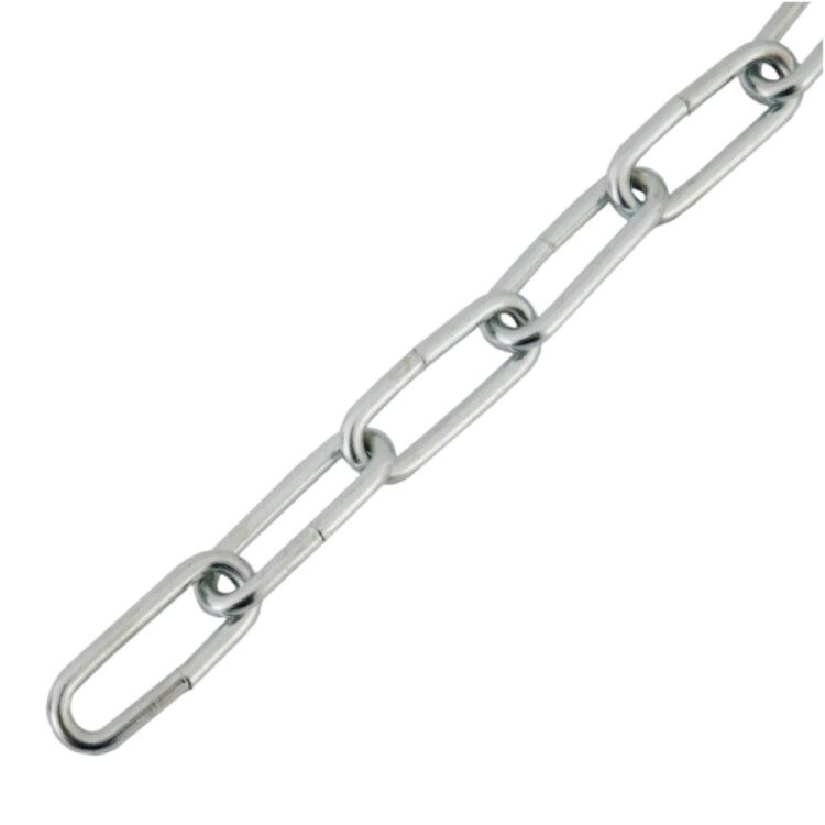 Цепь длиннозвенная DIN 763 (LLC) 4мм-накл. (уп.38м) Tech-KREP 103332 - это кольцевая цепь из стали с толщиной материала 4 мм. Она имеет защитное гальваническое/электролитическое цинковое покрытие, которое предотвращает коррозию.