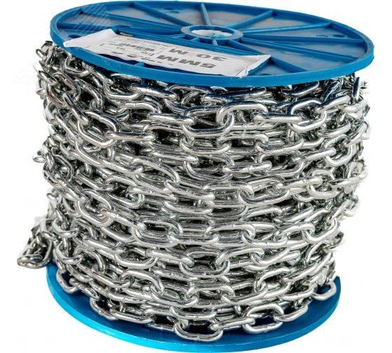 Цепь короткозвенная DIN 766 (SLC, ГСИ) 8 мм оцинкованная, накладная (10 м) используется для создания натяжений, крепления элементов и фиксации неответственных конструкций. Применяется там, где нужны долговечность и устойчивость к коррозии, но не требуются высокие динамические нагрузки.