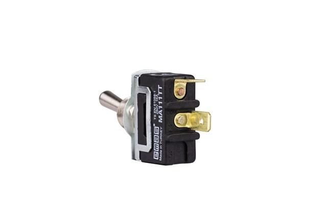 Переключатель ON-OFF 2 клеммы от бренда EMAS с артикулом ma111t - это механический коммутирующий элемент для включения и отключения электрических цепей постоянного и переменного тока. Применяется в стационарных и мобильных системах управления, особенно там, где требуется высокая надёжность и компактность.