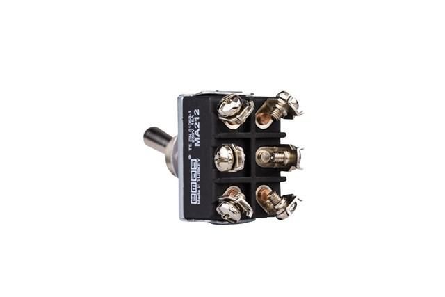 Переключатель ON-ON (дубль контактов) и селекторный EMAS с артикулом ma212 - это компактный механический переключатель для коммутации цепей управления в стационарных и мобильных системах, рассчитанный на высокую надёжность и длительный срок службы.