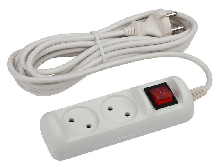 Удлинитель электрический U-2s-5m-2x1 без заземления c выключателем 2 розетки 5м ПВС 2x1мм2 10А - Б0044048 ЭРА
