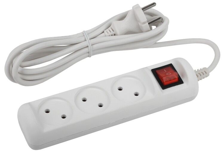 Розетки стандарта Евро (Schuko), совместимы с большинством европейских и российских вилок. Кабель закреплён в корпусе, замена невозможна без демонтажа устройства. Штекер с углом поворота 90° позволяет легко подключать удлинитель за мебелью или в узком месте у стены. Для безопасной эксплуатации не перегружайте все три розетки одновременно - распределите нагрузку между приборами.