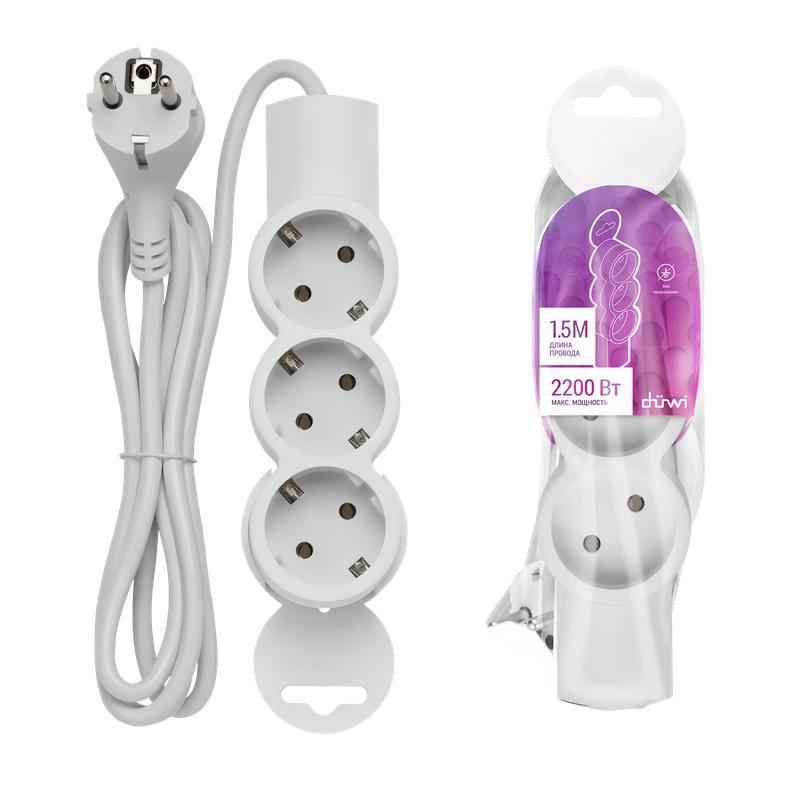 Удлинитель ПВС 3х0.75 3х1.5м имеет штекер на одном конце и три розетки на другом. Для подключения достаточно вставить штекер в стенную розетку. Убедитесь, что входная розетка также имеет заземление - иначе функция защиты будет недоступна. Кабель выполнен из гибкого ПВС, легко расправляется, но не рассчитан на фиксацию в каналах или закладку в стены. Монтаж исключительно внешний, без скрытой прокладки.