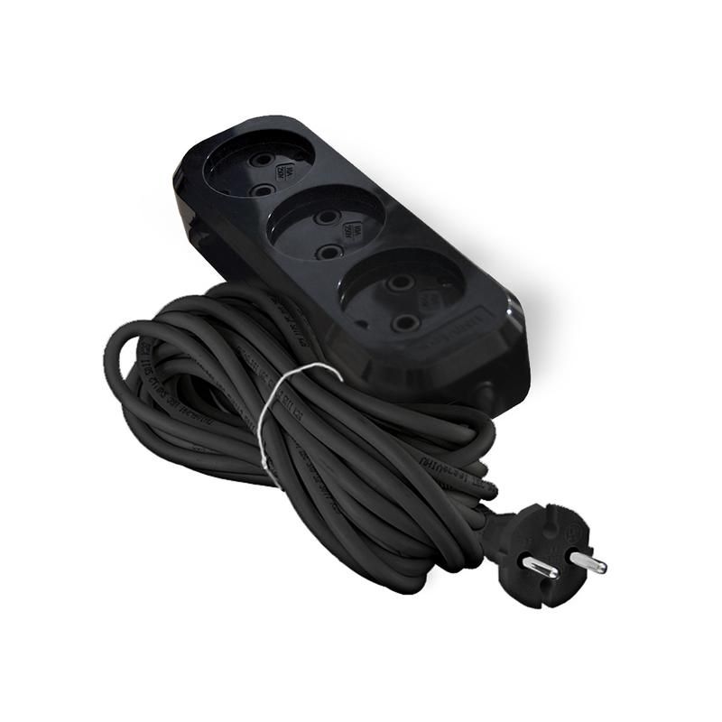 Удлинитель 3-х гнездный без заземления 10А IP20 Е-202/Е-203 ПВС 2х0.75 АБС-пластик черный - компактное решение для временного подключения бытовых приборов с низкой мощностью, где не требуется заземление. Произведён компанией Universal в серии ПРЕМИУМ, артикул 2166.