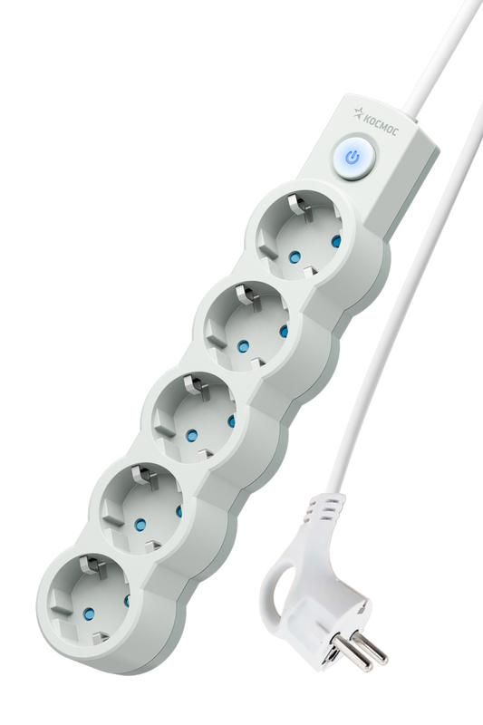 Удлинитель КОСМОС yksm3m-5g-z-v10a-w - надёжное решение для временного подключения нескольких устройств в домашних условиях. Благодаря трём метрам провода, пяти розеткам с защитными шторками и встроенному выключателю он удобен для работы с бытовой техникой, зарядкой оборудования и организации рабочего места.