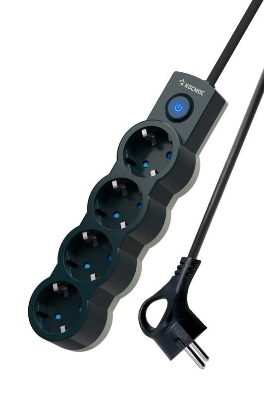 - Удлинитель КОСМОС yksm3m-4g-z-v10a-b рассчитан на частые включения - выключатель выдерживает более 10 000 циклов