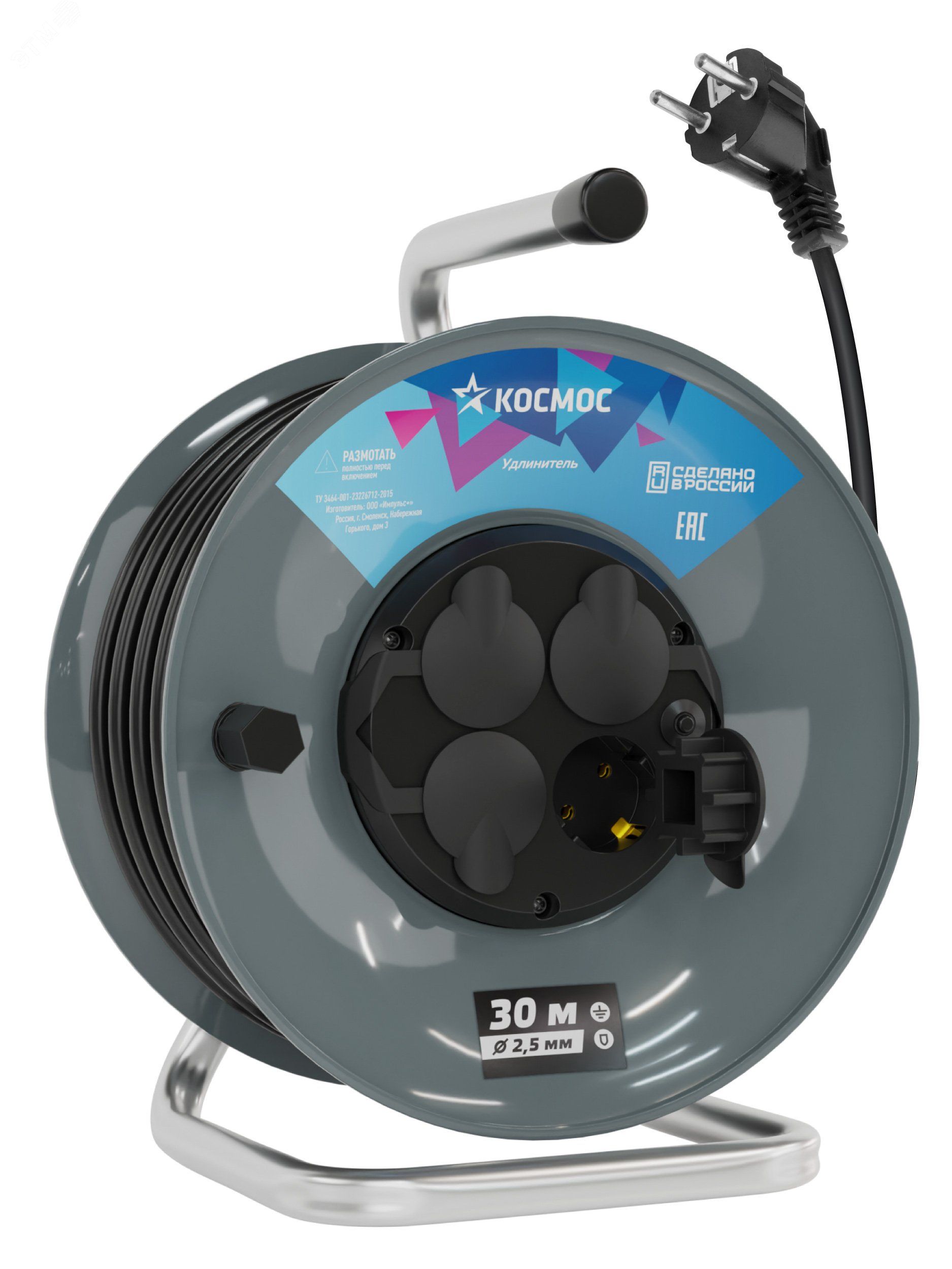 Удлинитель КОСМОС катушка 16А 4 гн ПВС 3*2,5 30м IP44 с заземлением - YKKsm30m-4g-Z(2,5)IP