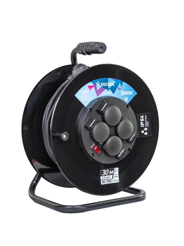 Удлинитель на катушке 4х30м с заземл. 16А IP54 4кВт КГ 3х2.5 термозащ. КОСМОС YKKsm30m-4g-Z(2.5)KG