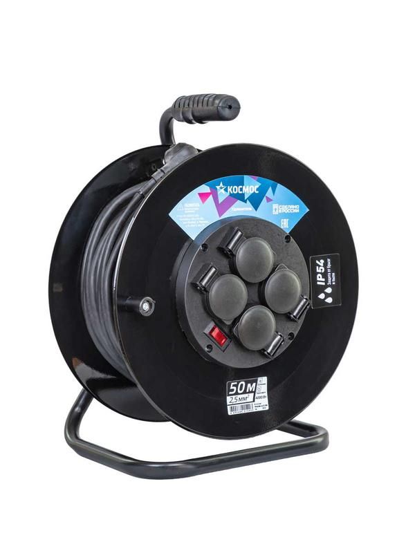 Удлинитель на катушке 4х50м с заземл. 16А IP54 4кВт КГ 3х2.5 термозащ. КОСМОС YKKsm50m-4g-Z(2.5)KG