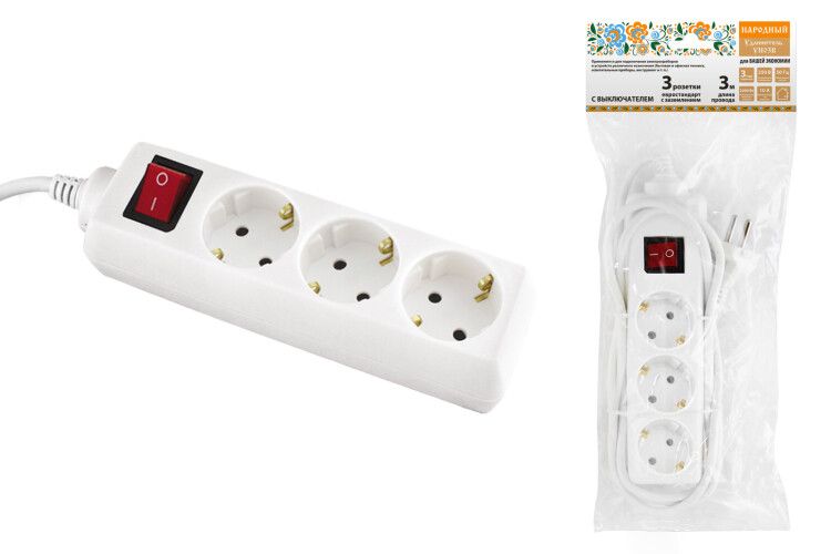 | Удлинитель народный УН03В выключатель, 3 гнезда, 3метра, с/з, ПВС 3х0,75мм2 10А/250В | SQ1303-1101 | TDM | 06.03.2026 | Под заказ | 281,69 ₽ | шт. | от 30 дней |