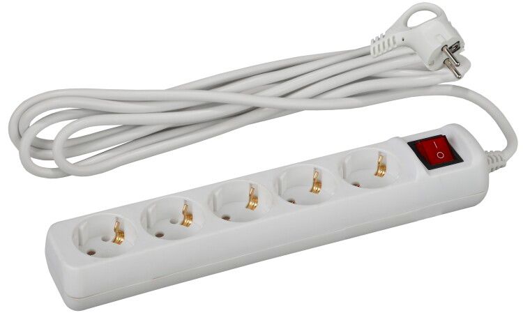 - Количество розеток: 5 штук, тип Schuko (с заземляющими контактами)