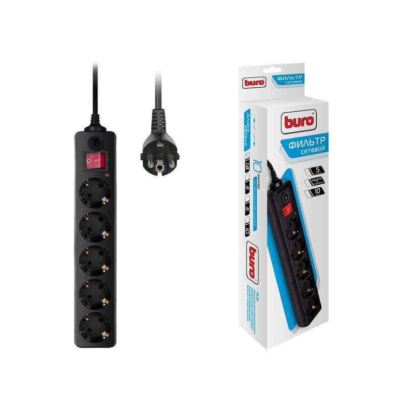 Удлинитель с сетевым фильтром 500SH-1.8-B от BURO - надёжное решение для подключения нескольких устройств с защитой от перегрузок и сетевых помех. Подходит для офисной техники, домашней электроники и оборудования на рабочих местах. Матовый чёрный корпус, заземление и встроенный выключатель делают его удобным в повседневном использовании.
