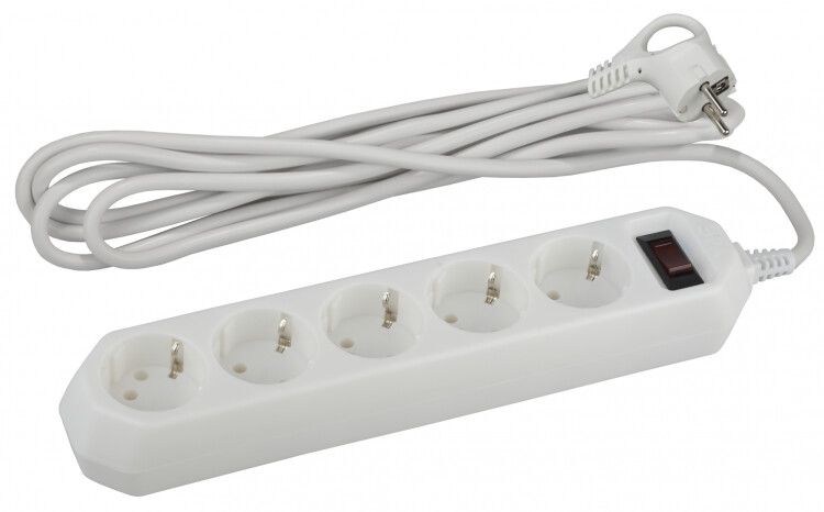 Удлинитель с сетевым фильтром 5 гнезд, 3 м, с заземлением, 10 А, с выключателем, ПВС 3х0.75, белый совместим со всеми бытовыми приборами, использующими евроконнектор (Schuko/CEE 7/4). Кабель ПВС имеет достаточную гибкость для многократного сворачивания и разворачивания. Для установки достаточно подключить к любой заземлённой розетке. Убедитесь, что сеть соответствует напряжению 220–250 В. Не рекомендуется подключать удлинитель последовательно к другому удлинителю - это создаёт риск перегрева.