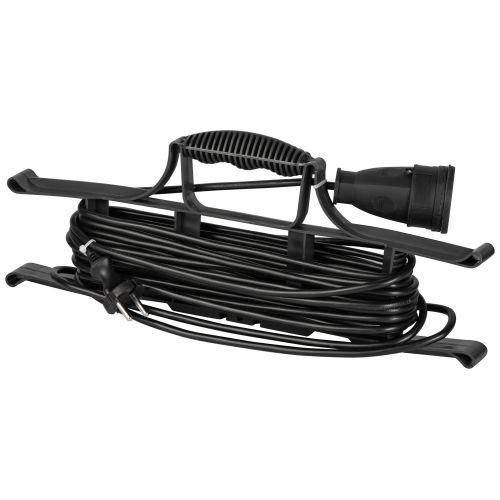 Удлинитель силовой на рамке 1 розетка без заземления 10 метров ПВС 2x1 мм2 имеет штекер стандарта Евро (Schuko) и розетку без заземляющего контакта. Совместим с бытовыми приборами, имеющими двухполюсную вилку. Для монтажа достаточно подключить штекер в стенную розетку - никаких инструментов не требуется. Кабель легко отматывается с рамки, после использования - наматывается обратно. Убедитесь, что используемый прибор не превышает 10 А и не требует заземления.