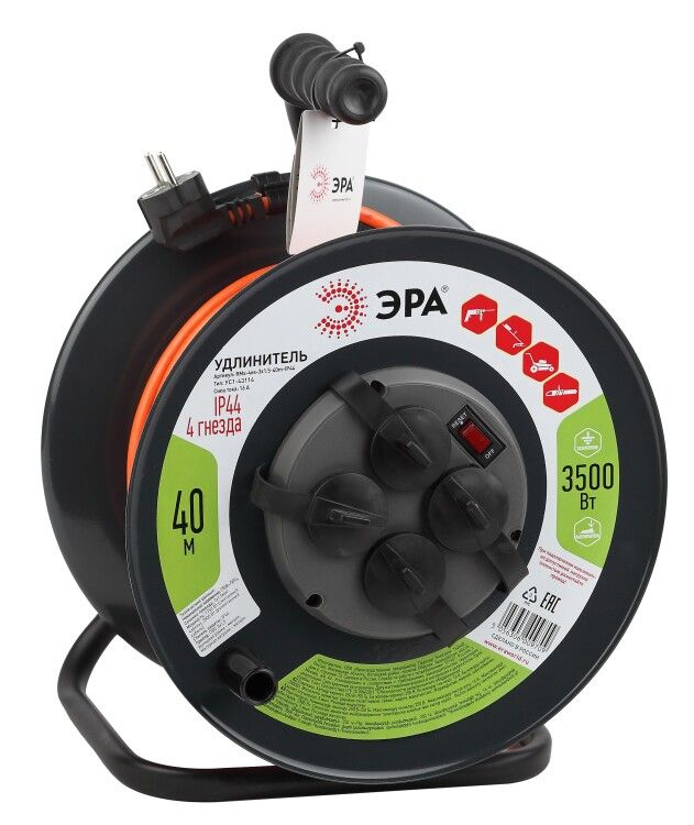 Удлинитель силовой RMx-4es-3x1.5-40m-IP44 на м. катушке c/з 4 гн 40м ПВС 3х1.5 ЭРА - Б0046851