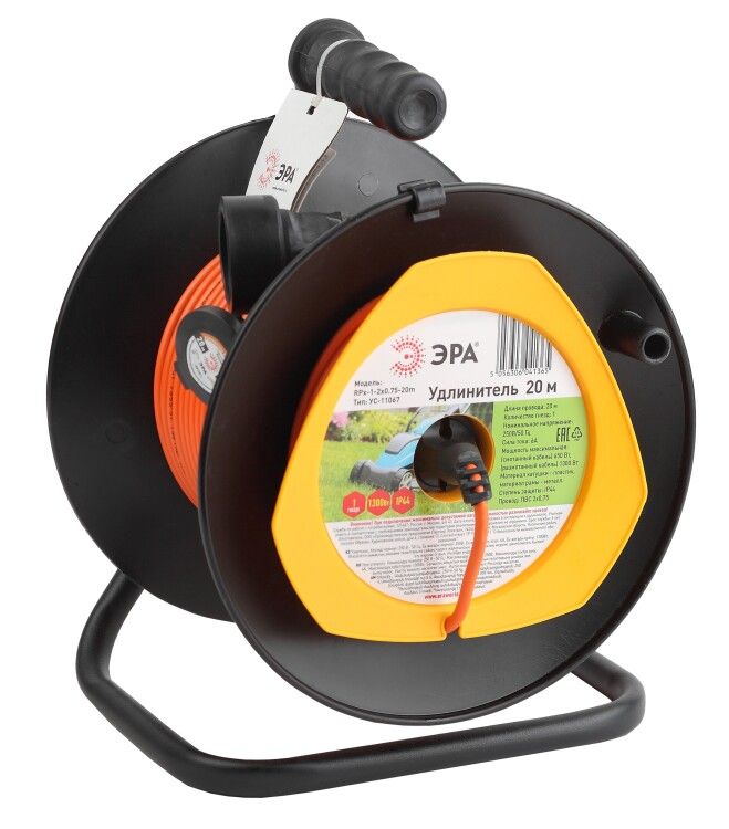 Удлинитель ЭРА RPx-1-2x0.75-20m совместим со всеми бытовыми приборами, имеющими штекер типа F (Евро). Для подключения достаточно вставить шнур в стенную розетку и подключить инструмент к выходному разъёму. Катушка имеет механизм автоматической намотки - потяните нужную длину, после работы - верните провод на место. Не требует установки или крепления. Обязательно проверьте, чтобы входная розетка была исправна и рассчитана на ток 6 А.