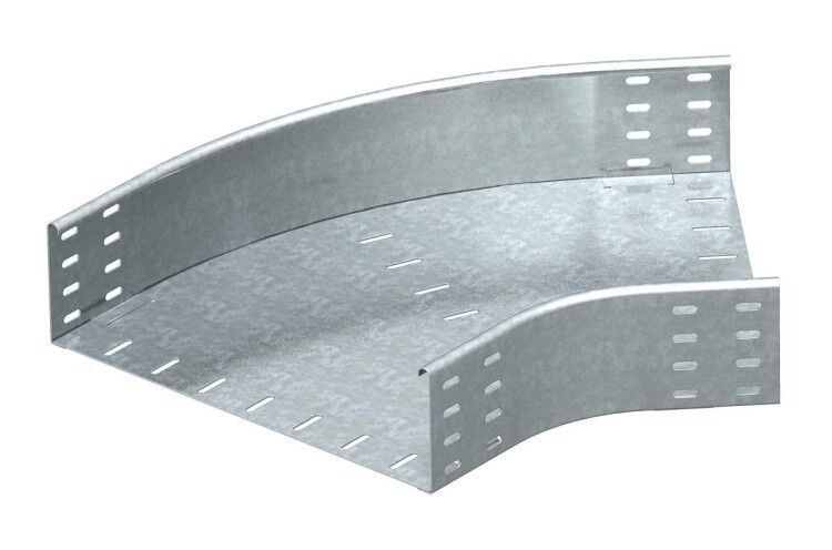 Угловая секция 45 градусов 110x400 мм от OBO BETTERMANN (арт. rb 45 140 fs, 7000685) предназначена для изменения направления кабельных трасс на 45° в системах с лотками высотой 110 мм. Изготовлена из оцинкованной стали с перфорацией, обеспечивает надёжный монтаж и совместима с основными сериями кабельных лотков OBO.