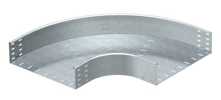 Угловая секция 90 градусов 110x400 мм от OBO BETTERMANN (артикул 7001940, тип RB 90 140 FS) предназначена для изменения направления кабельных лотков на 90° при прокладке трасс с высотой боковой стенки 110 мм. Изготовлена из оцинкованной стали с жестким изгибом и перфорацией - обеспечивает надежную фиксацию и совместимость с системой OBO.