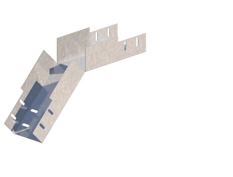Лоток монтажный угловой 45 градусов вниз совместим с прямыми лотками того же размера (100×65 мм) и аналогичного покрытия. Для сборки используются самонарезающие или обычные болты M6–M8 через предварительно просверленные отверстия. Монтаж выполняется на опоры или кронштейны с шагом не более 1,5 метра. Обязательно выравнивать все звенья системы по одной оси - иначе возможны затруднения при протяжке кабелей. Не рекомендуется использовать с лотками других производителей без проверки точности геометрии.