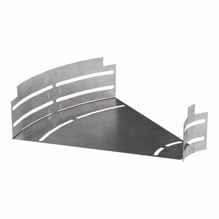Элемент совместим со стандартными кабельными лотками и каналами, имеющими соответствующий крепёжный профиль. Монтируется с помощью болтовых соединений или саморезов - поверхность готова к сверлению. Для надёжной фиксации рекомендуется использовать крепёж из нержавеющей стали при высокой влажности. Угол можно зафиксировать в любом положении внутри диапазона 0–45° с помощью штатных зажимов или контргаек.