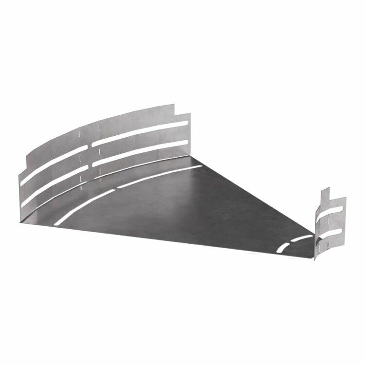 Угол горизонтальный изменяемый 0–45 градусов 400×80 совместим с металлическими лотками шириной 400 мм и высотой 80 мм. Монтаж осуществляется с помощью болтовых соединений - крепится к торцам лотков через предварительно подготовленные отверстия. Для надёжности рекомендуется использовать комплектные болты и шайбы того же производителя. Перед установкой проверьте соответствие внутренних габаритов лотка и угла - расхождение более 2–3 мм может вызвать перегрузку на крепления.