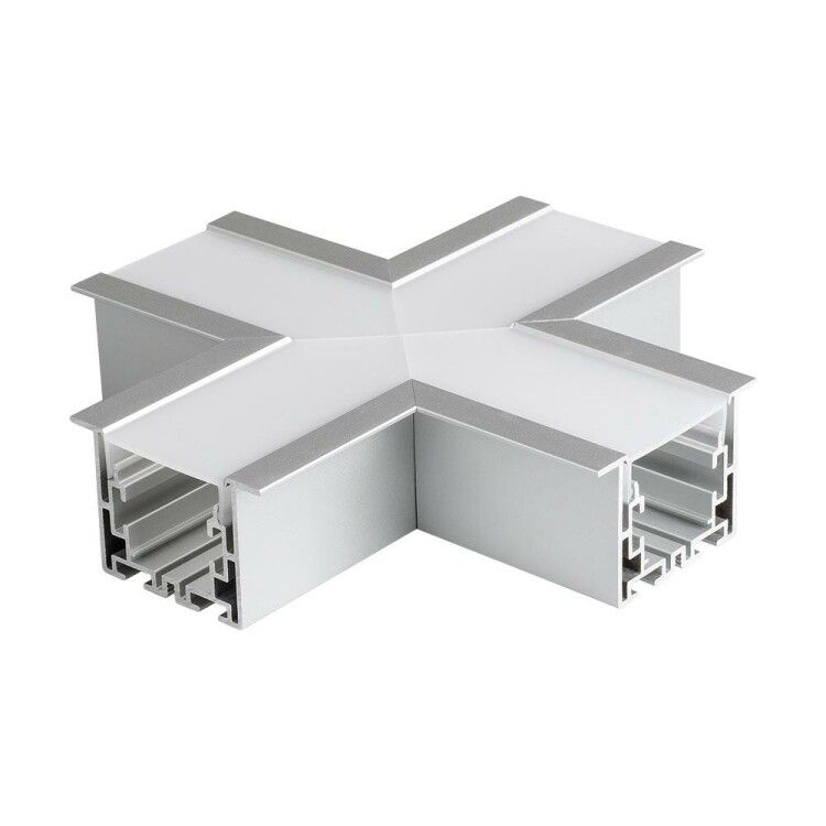 Угол S2-LINIA55-F-X90 крестовой (металл) предназначен для создания точечного соединения четырёх профилей S2-LINIA55-F под углом 90°. Он формирует визуальную линию «Х» на поверхности, обеспечивая равномерное распределение света и устойчивую конструкцию. Применяется в системах освещения с линейными профилями - например, в потолочных и настенных светильниках, модульных люстрах, подсветках зон, выставочных стендах и промышленных помещениях.