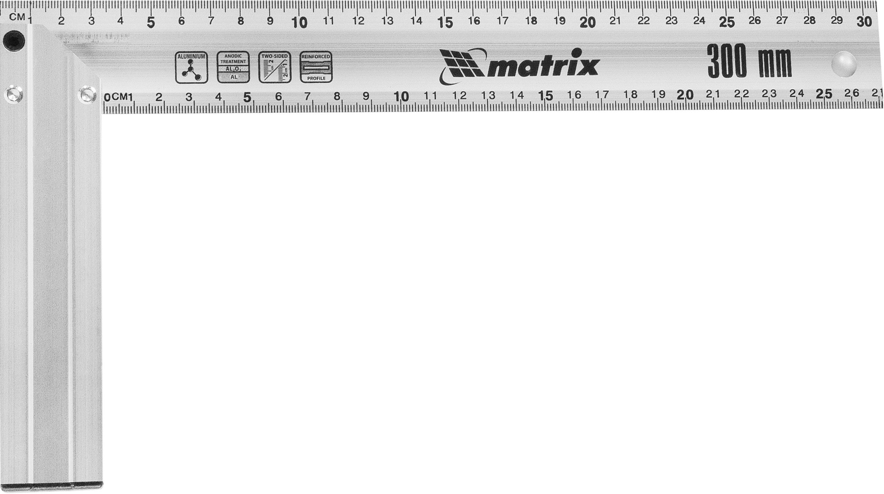 Угольник MATRIX 32472 - алюминиевый литой инструмент длиной 300 мм, предназначенный для точной разметки и контроля прямых углов при работе с металлом, деревом и другими материалами. Анодированная поверхность и двухсторонняя шкала обеспечивают долговечность и удобство в использовании.