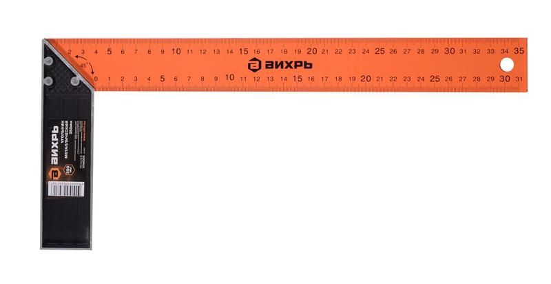 Угольник металлический 350 мм от бренда Вихрь - точный измерительный инструмент для контроля прямых углов и разметки деталей в механической обработке, сборке и монтаже. Артикул 73/11/3/5 обеспечивает надёжную работу даже в условиях повышенной нагрузки.