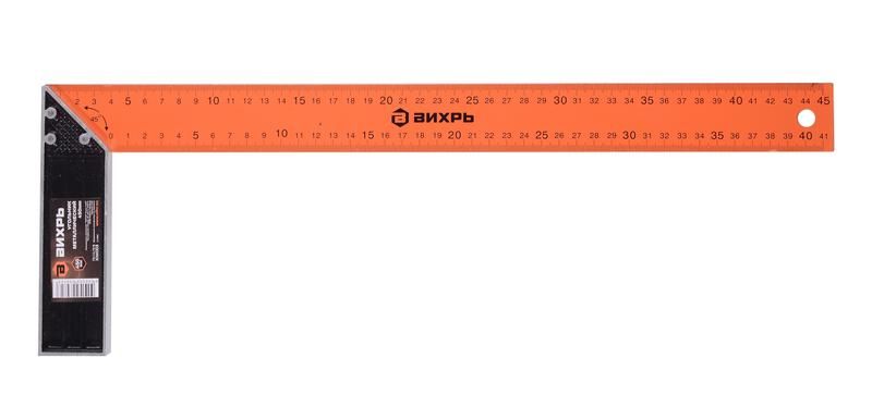 Угольник металлический 450 мм от бренда Вихрь - точный измерительный инструмент для контроля прямых углов и разметки на металле, дереве и других твердых материалах. Артикул 73/11/3/6 обеспечивает надежную работу в условиях мастерских, на стройплощадках и в цехах.