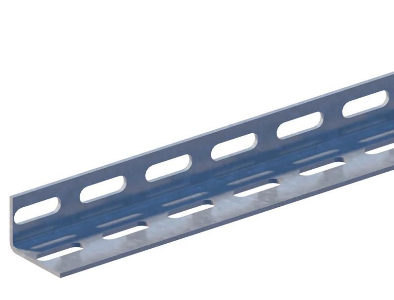 Уголок монтажный перфорированный ГМУ.36.50.2000.2.2 совместим со всеми типами болтовых креплений M6–M8. Отверстия расположены равномерно - позволяют легко выстраивать прямые участки или повороты. Для монтажа используются анкерные болты, дюбели или самонарезающие винты в зависимости от основания (бетон, металл, кирпич). Каждый уголок можно резать на части нужной длины без потери прочности. Рекомендуется использовать пару одинаковых уголков для формирования U-образного крепления лотка - так повышается устойчивость к прогибу.