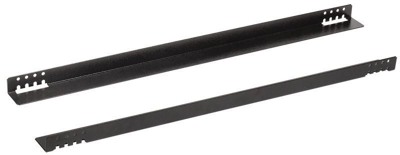 Уголок направляющий L=360 мм черный (комплект 2шт) совместим со всеми стандартными 19” монтажными профилями. Монтируется боковым креплением - к передним и задним вертикальным профилям стойки с помощью болтов или саморезов. Не выступает внутрь шкафа, поэтому не перекрывает доступ к оборудованию и не мешает проводке.