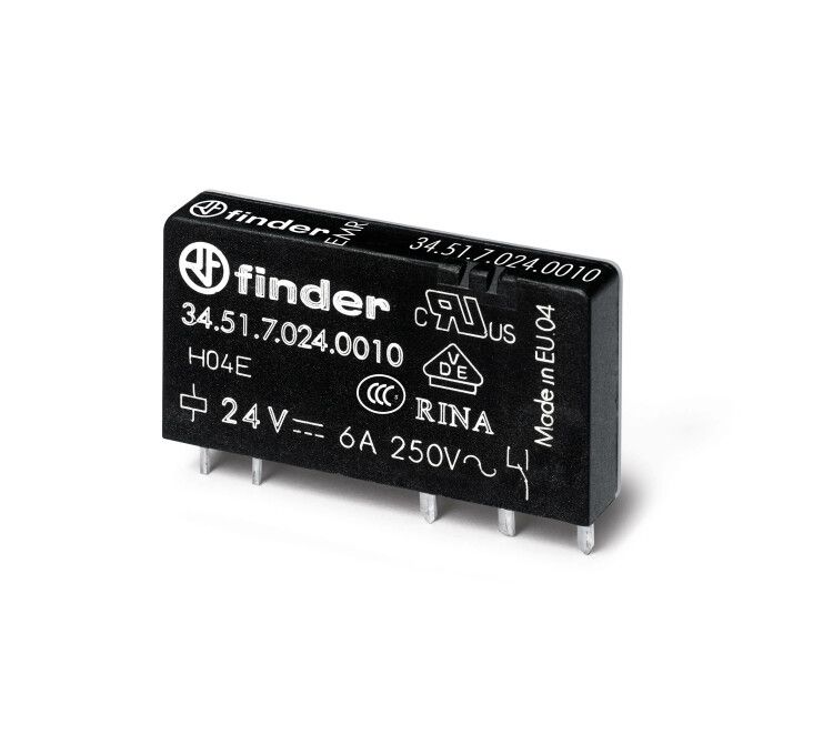Ультратонкое электромеханическое реле; монтаж на печатную плату; 1CO 6A; контакты AgNi+Au | 345170485010 Finder 34.51.7.048.5010