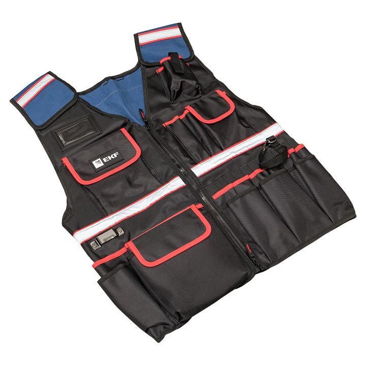 Универсальный регулируемый жилет монтажника С-22 EKF Professional - это незаменимый помощник для профессиональных монтажников. Он обеспечивает комфортный доступ к инструментам и позволяет равномерно распределить нагрузку по карманам жилета. Благодаря этому, работать в таком жилете становится гораздо легче, особенно в жаркую погоду.