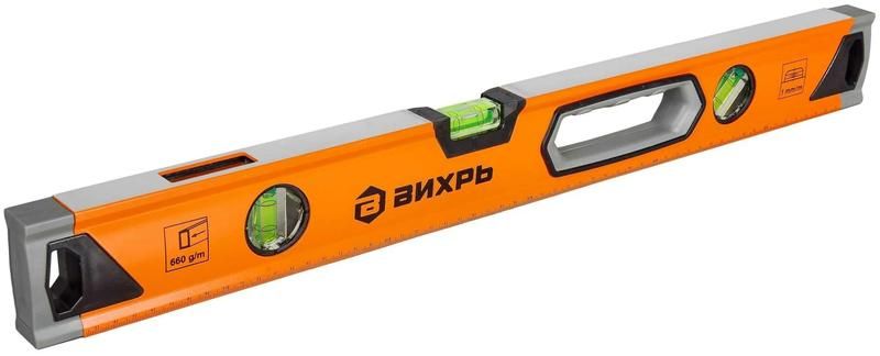 Уровень алюминиевый магнитный 600 мм фрезерованный 3 глазка (1 зеркальный) от бренда Вихрь - точный измерительный инструмент для контроля горизонтали, вертикали и диагоналей на металлических и других твердых поверхностях. Алюминиевый корпус с магнитом и фрезерованной базовой поверхностью обеспечивает надежную фиксацию и минимальную погрешность при работе.
