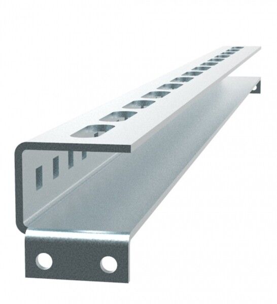 - Форма просечки: квадратное отверстие и продольный паз - обеспечивают гибкую фиксацию крепёжных элементов и возможность регулировки положения оборудования
