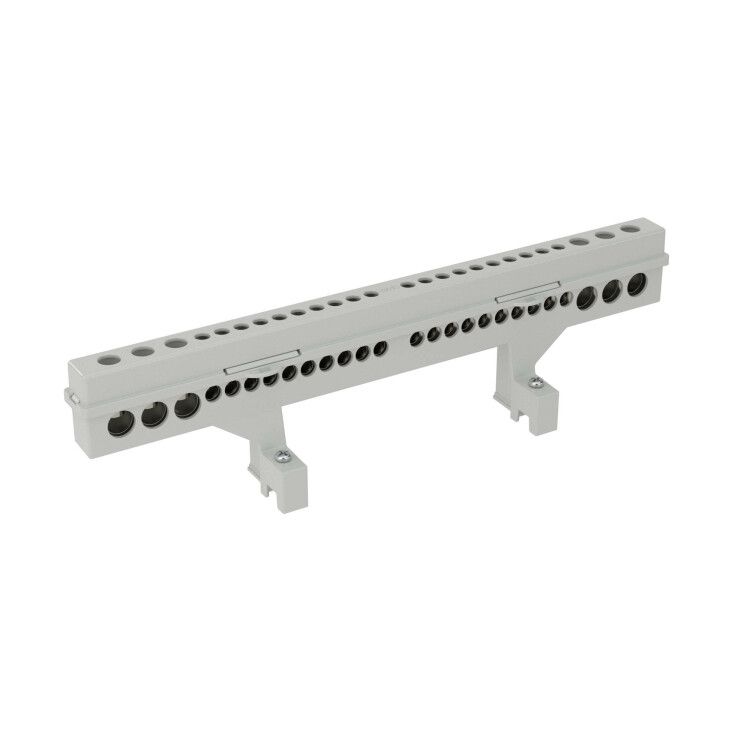 Блок клеммный 12 модулей с крепежом, усиленный (2х12 мод.) N+PE предназначен для создания надёжного электрического соединения между проводниками в распределительных щитах. Он используется для подключения нулевых (N) и защитных (PE) проводов в системах с рабочим напряжением до 400 В. Подходит для установки в щитках серии RAM base, а также в аналогичных шкафах других производителей. Применяется в промышленном оборудовании, системах автоматизации, конвейерах, насосных станциях и коммерческих зданиях.