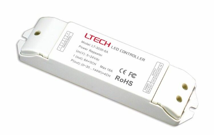 Усилитель для подключения светодиодной ленты RGB Varton 5-24 VDC IP20 175х44х30 мм (LTECH) 3 канала по 144 Вт | LT-3030-6A VARTA