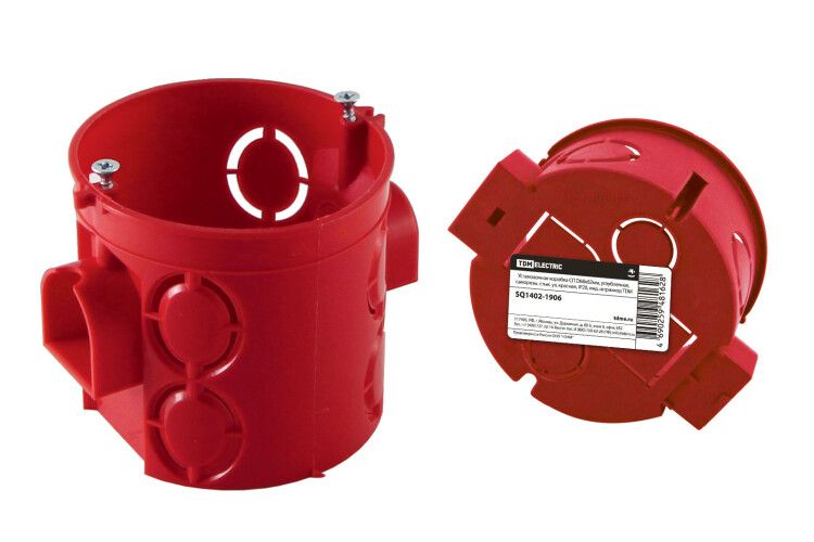 Установочная коробка СП D68х62мм, углубленная, саморезы, стык. уз, красная, IP20, инд. штрихкод | SQ1402-1906 TDM ELECTRIC - это надежная и удобная коробка для установки электрических выключателей, розеток и других электроустановочных изделий. Она изготовлена из прочного пластикового материала - полистирола или полипропилена, обладающего хорошими диэлектрическими свойствами.